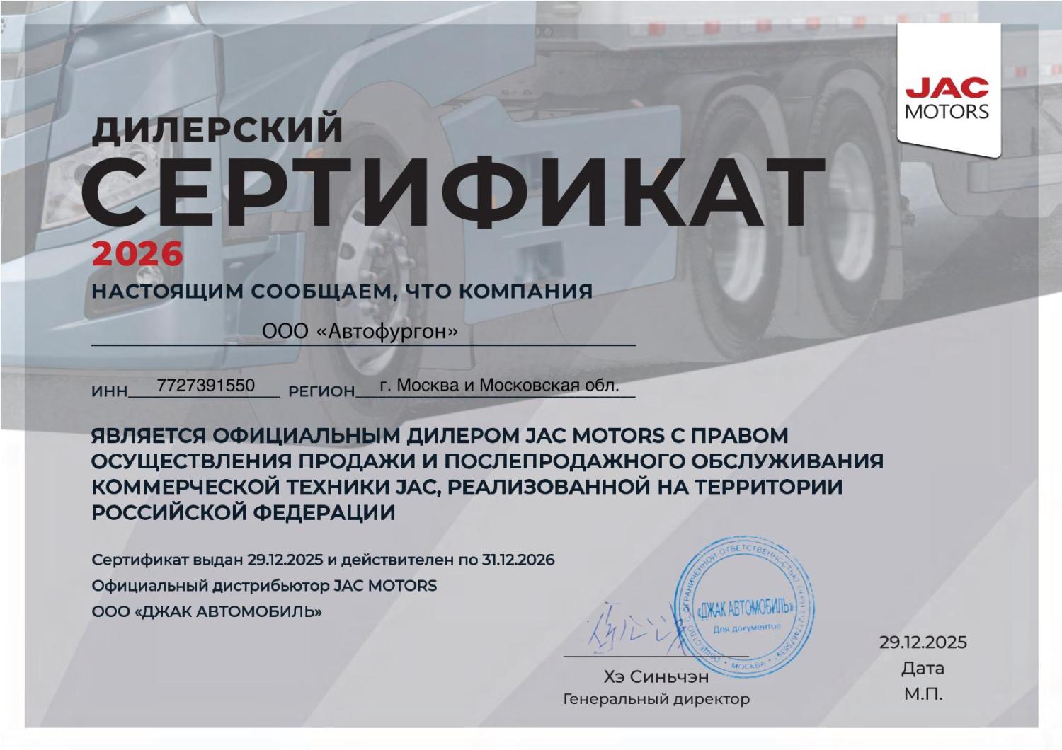 «Автофургон» является официальным дилером JAC, Sollers, КАМАЗ, Sitrak, HOWO, DongFeng, FOTON, Daewoo Trucks, AmberTruck (JMC), Ford, Hyundai, Isuzu, Iveco.